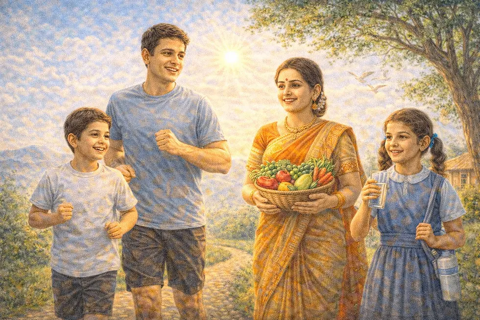 Once, Dhanvantari took the form of a parrot to test the physicians (Vaidyas) on earth. He visited many famous doctors and asked, "Ko'ruk? Ko'ruk? Ko'ruk?" (Who is healthy? Who is disease-free?). Most doctors prescribed various medicines and treatments, which disappointed the parrot. Finally, he reached the ashram of the great sage Vagbhata. When asked the same question, Vagbhata replied: "Hitabhuk, Mitabhuk, Ritabhuk". This means one who eats beneficial food, moderate food, and food according to the season remains healthy. Satisfied with this answer, Dhanvantari blessed him.